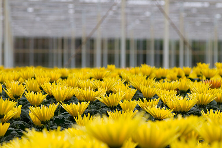 The chrysanthemum (Chrysanthemum spp. ), also called mum or chrysanth, is a flowering plant that belongs to the genus Chrysanthemum of the family of Asteraceae. The plant is originally from Asia and northeastern Europe and the majority of the different species derive from East Asia. Especially in China a wide range of varieties and cultivars has been developed for commercial propagation and production. The current, commercially cultivated chrysanthemums are more striking than the wild varieties. The flower heads can look like daisies or pompoms or buttons. This particular genus consists of many hybrids and an extensive range of cultivars that are produced for commercial, horticultural purposes. Traditionally, yellow is the main colour of this flowering plant. Nowadays, a wide range of other colours is available such as white, purple and red.